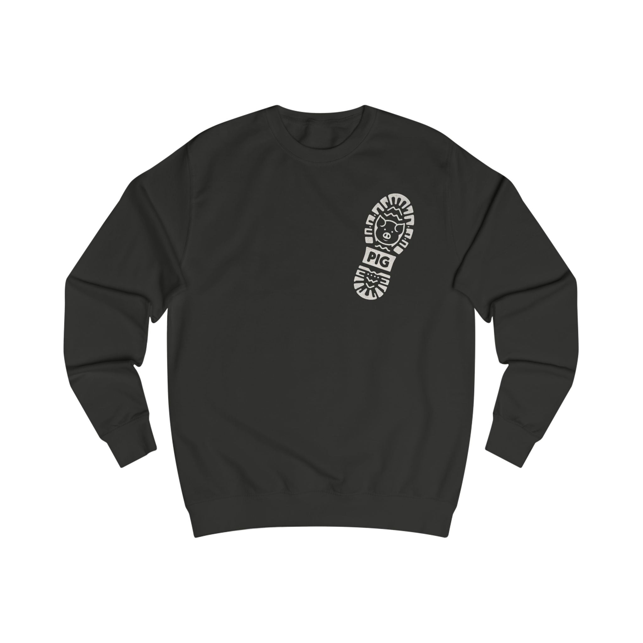 The Pig Step Crewneck features our signature pig icon stamped into a bold footprint graphic — a subtle reminder that every step forward leaves a trace. Designed with intention, this piece balances street edge with everyday wearability.